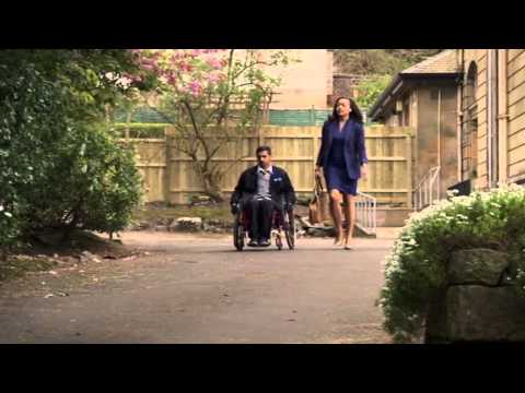 In this clip, it is clear that there is a teacher and a student because the teacher is wearing professional clothing, she is wearing a fitted dress and blazer with heels. Her hair is neat and tidy. Tariq who is the disabled character is in a wheelchair and is wearing his school uniform. He is also wearing gloves, this will be because it makes it easier for him to move his wheelchair as the gloves give him more grip. The setting in the clip is in the school grounds and garden area, there is a lot of greenery with trees and plants in the frame. There is also the school building in the right hand side of the frame. There is a wheelchair ramp to show that the disabled character can access places easily. The clip shows a tracking shot of both characters moving from right to the middle of the frame. The clip starts with a long shot where you can see both characters full height, to then a mid shot of the teachers waist and above Tariq's shoulders. The shot has been zoomed so both characters can be seen in more detail. Sound during the clip includes birds singing which brings a calming atmosphere and due to the little noise in the background it makes it easier to hear the conversation between the two characters.